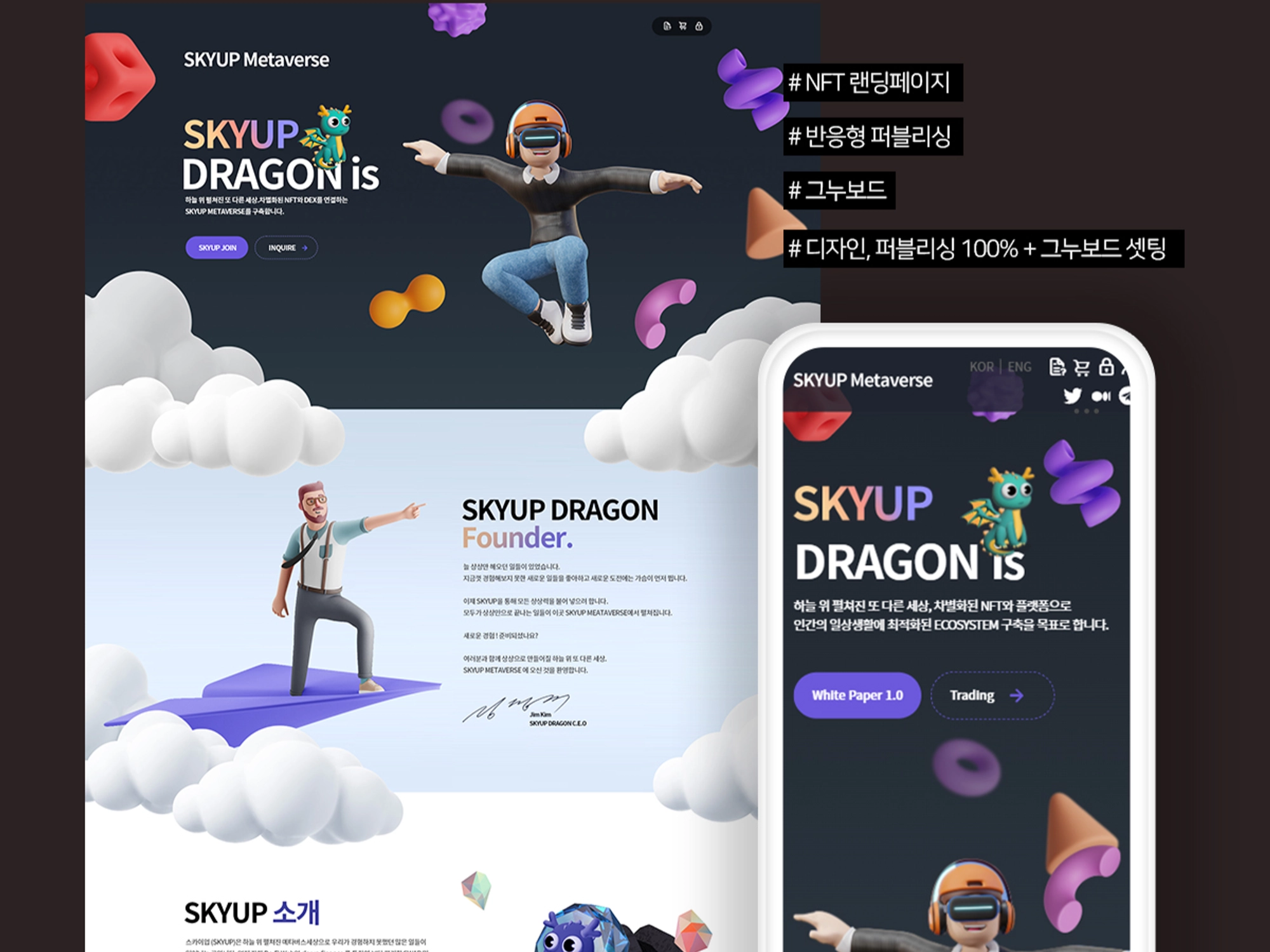 EX1: AI + 유니티게임 + 앱 + 웹사이트 + 예약 + E커머스 ⇒ 냐옹커머스 APP 구축